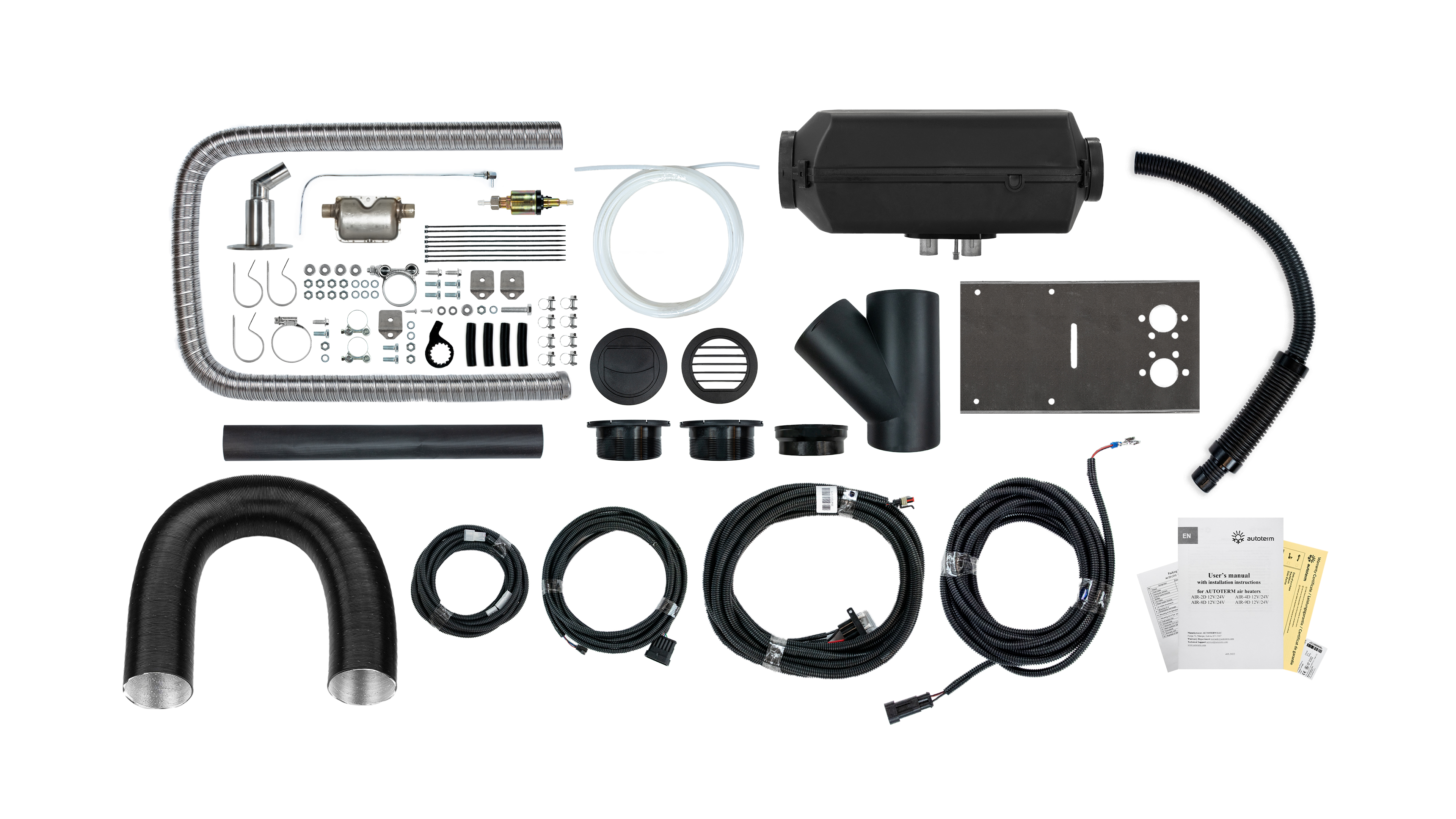 The set includes a standard installation kit for the AUTOTERM Air 4D air heater, and boat/yacht accessories required for partial installation. Accessories needed may differ, depending on the boat/yacht.