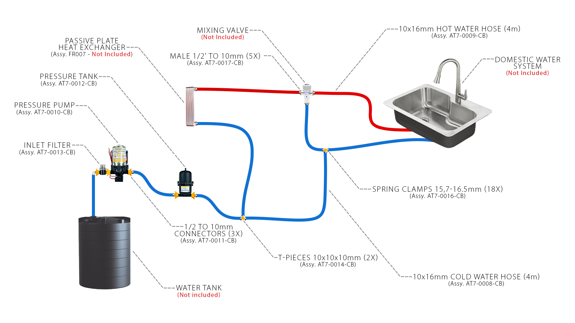 Warning! This kit doesn't include the combiBOIL, 5kW or 10kW plate heat exchangers, water tank, thermostatic mixing valve, and the domestic water system itself (see in product photos).