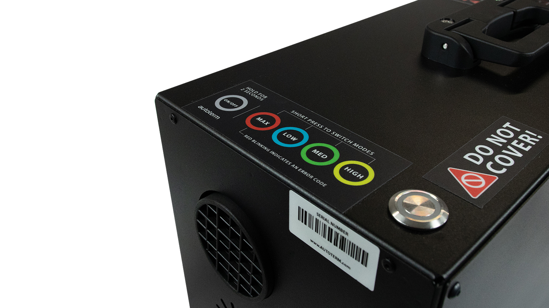 The AUTOTERM Travel Box 2.0 can be operated by a single button that’s located on top of the heater. When operating without an external temperature sensor, the heater works in 4 power levels, but with it, it’s possible to set 3 different target temperatures.