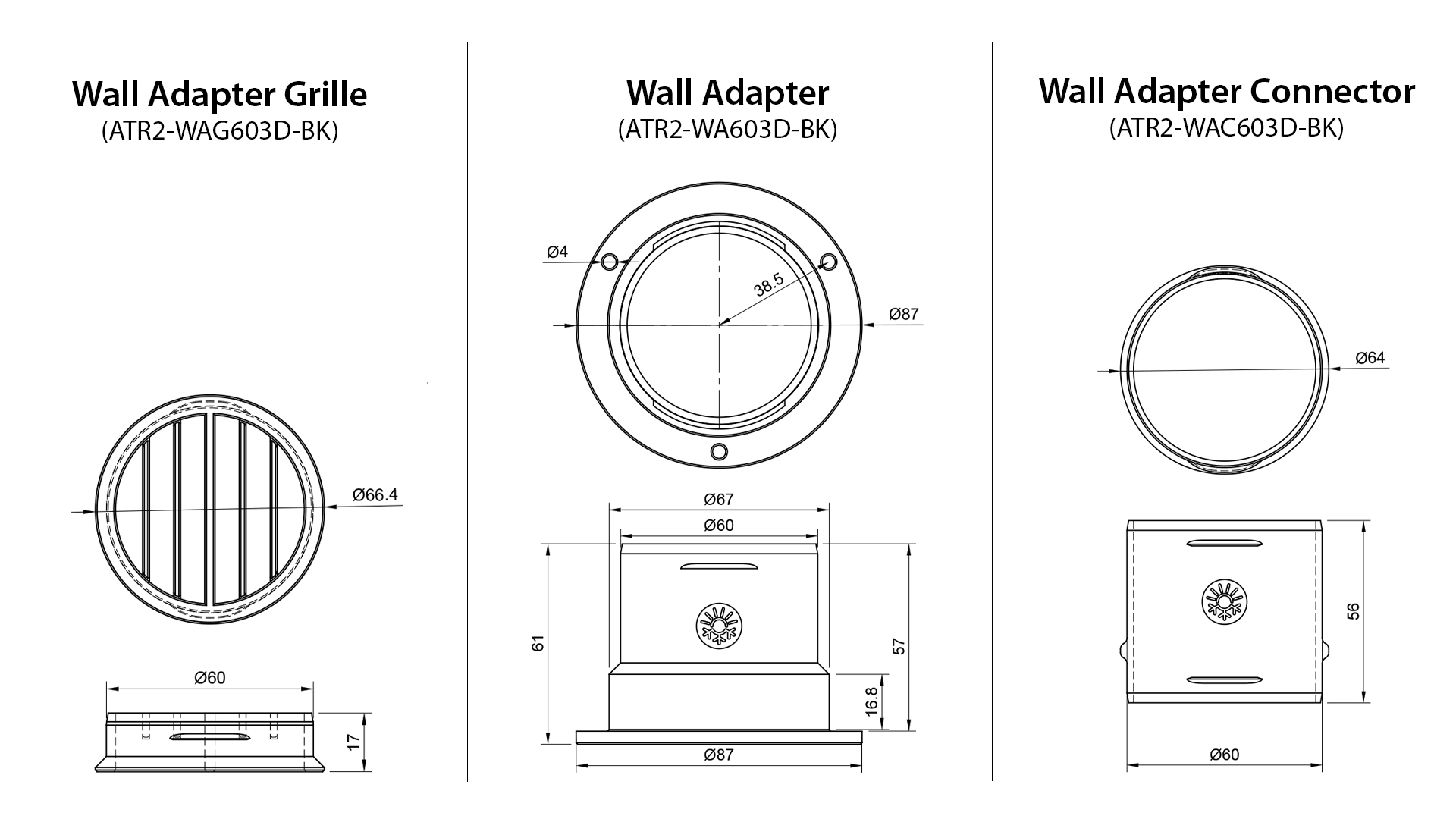 Wall adapter grille Ø 60mm (Assy. ATR2-WAG603D-BK)