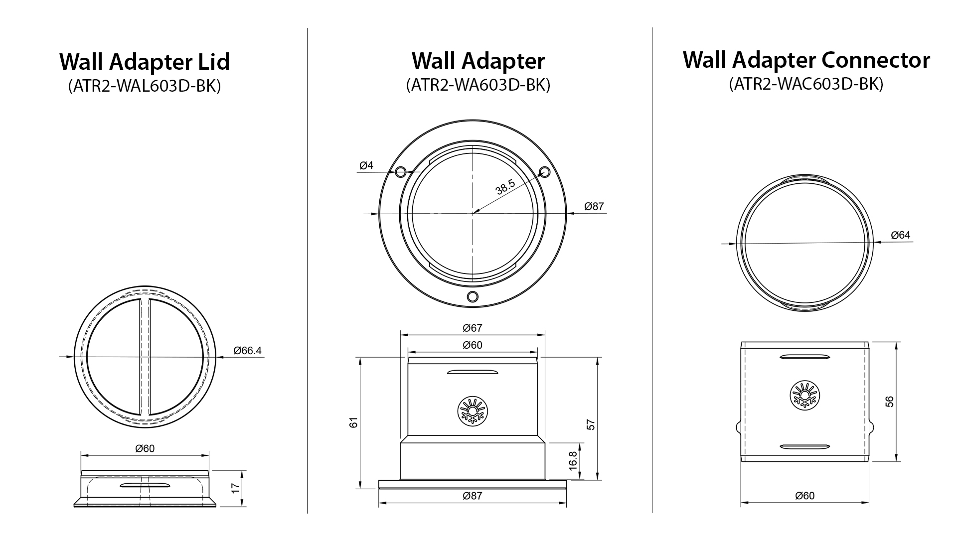Wall adapter lid Ø 60mm (Assy. ATR2-WAL603D-BK)