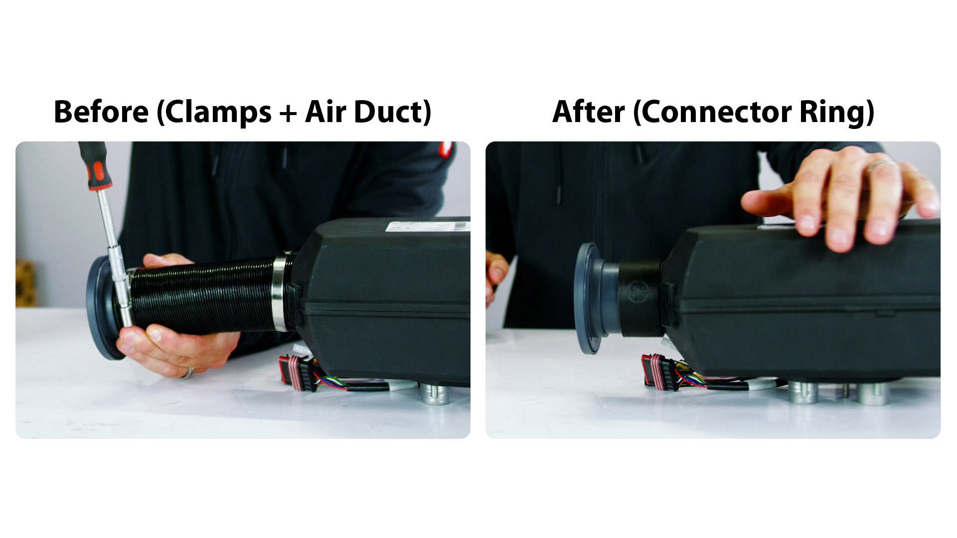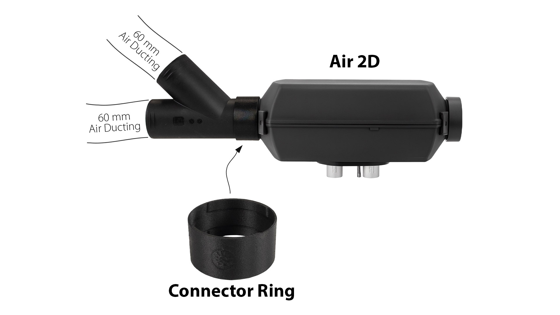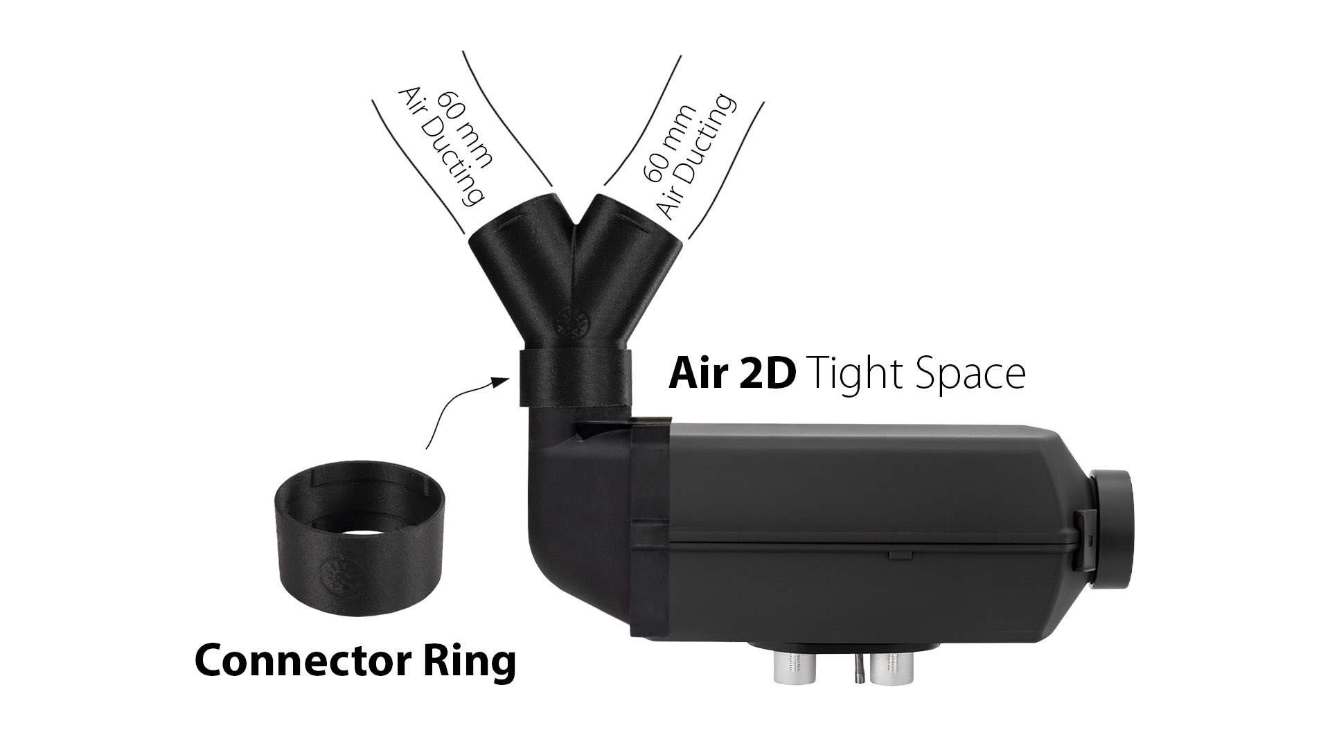 Designed to simplify installations, this adapter allows direct attachment of Ø60 mm Y-shape and T-shape adapters to the Air 2D heater, without the need for short connecting pipe segments and clamps.