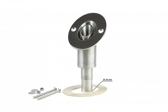 Skew exhaust adapter for yachts and boats AT0008 with outer diameter 24 mm is formed of 316 sort of stainless steel.