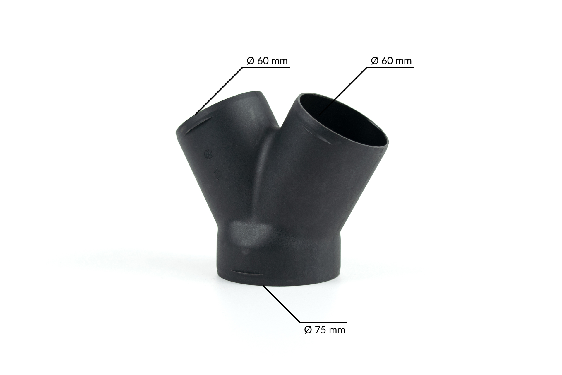 Y-shape adapter for air pipe Ø75-2*60mm assy.DE025