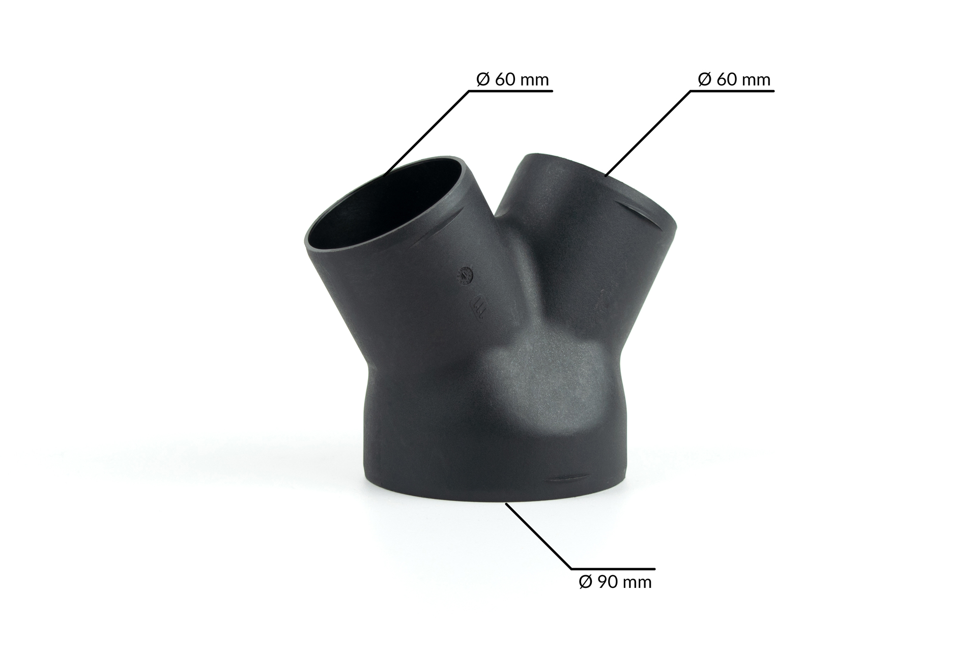 Y-shape adapter for air pipe, D=90*2x60 with 120°, assy.DE041