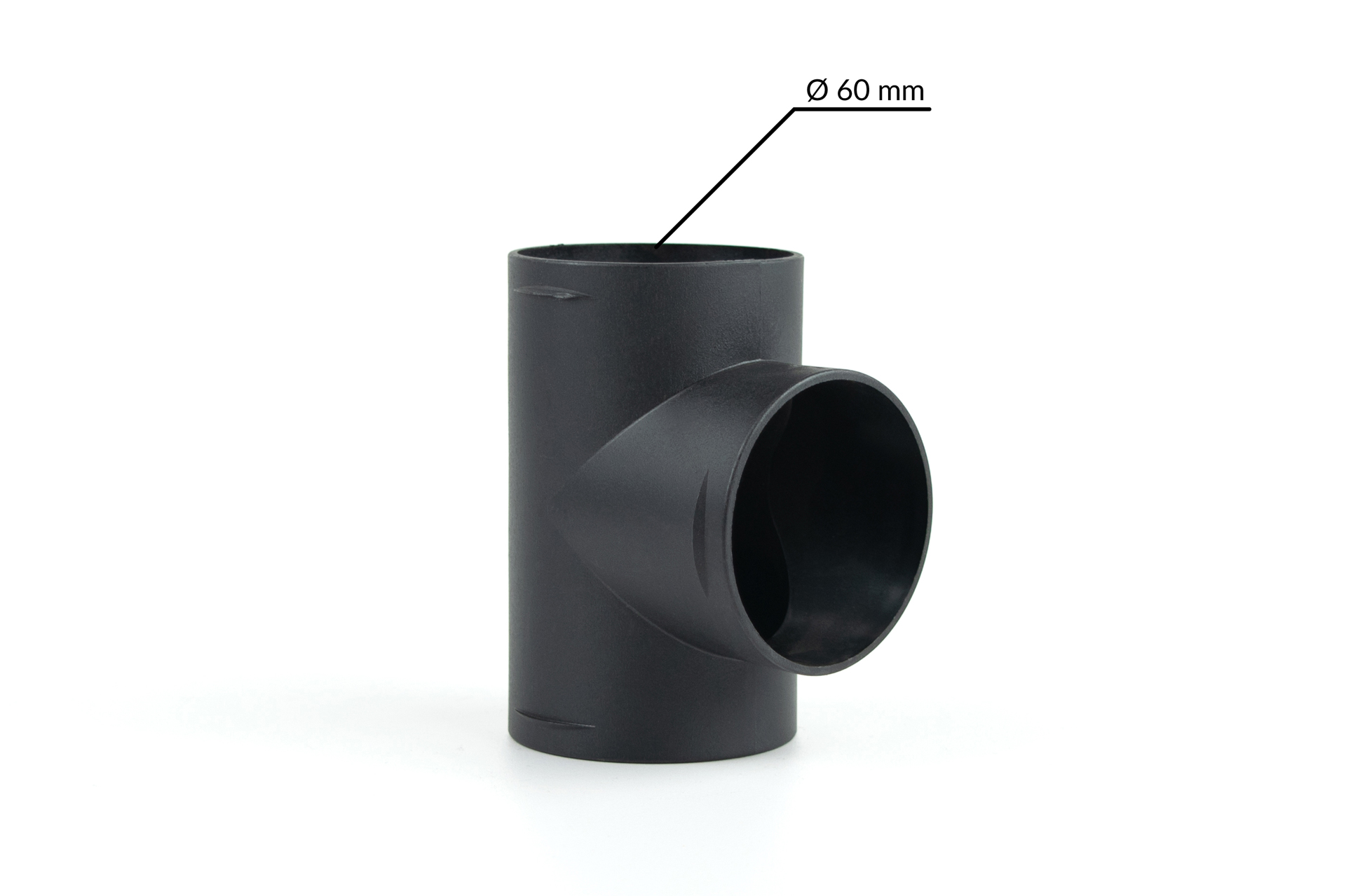 The T-shape adapter for air pipe Ø60 mm with angle 90° is suitable for the following air heaters: