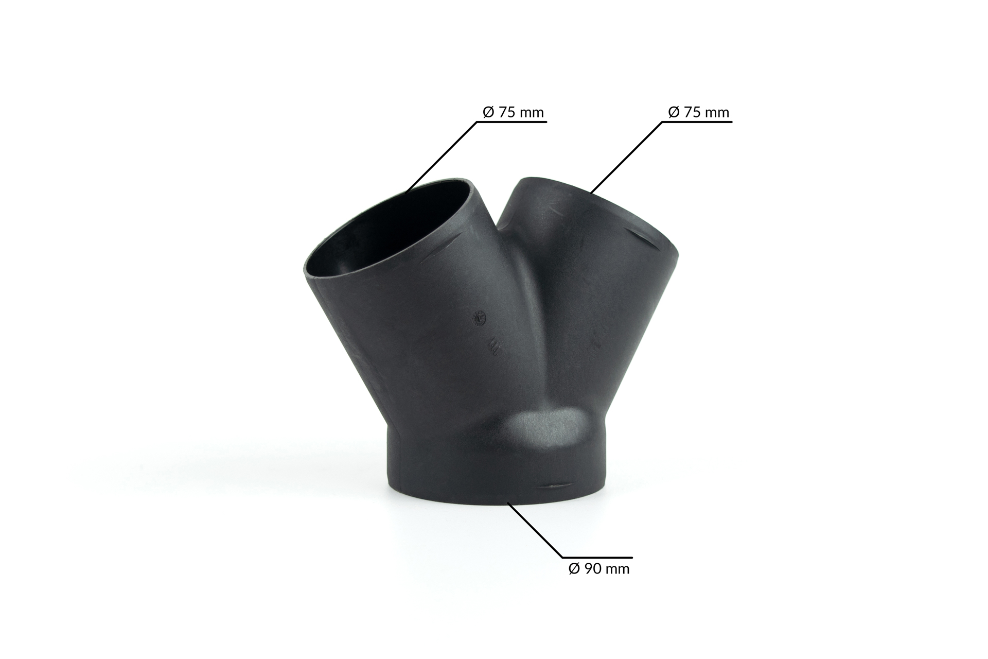 Y-shape adapter for air pipe, D=90*2x75 with 120°, assy.DE029