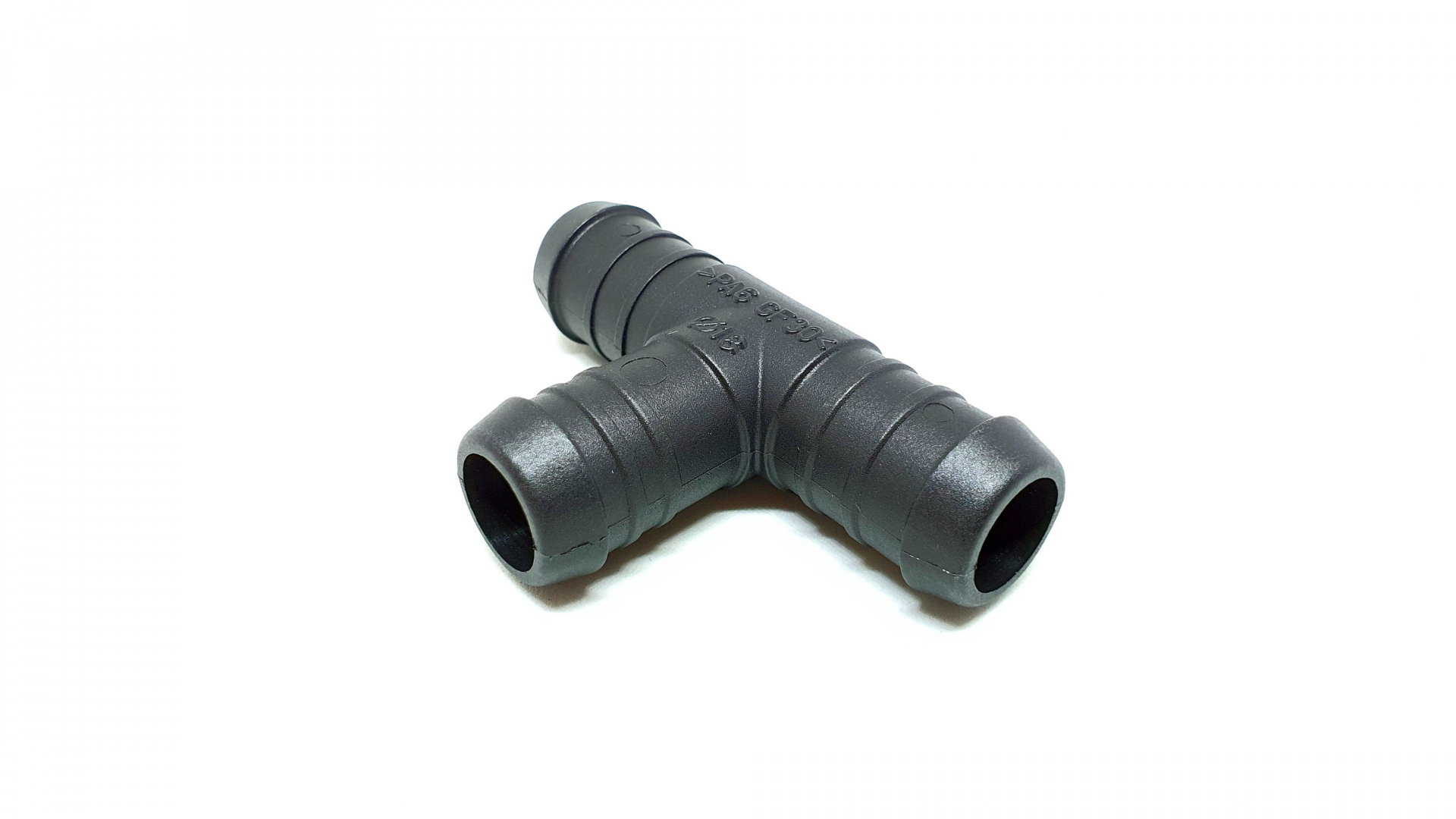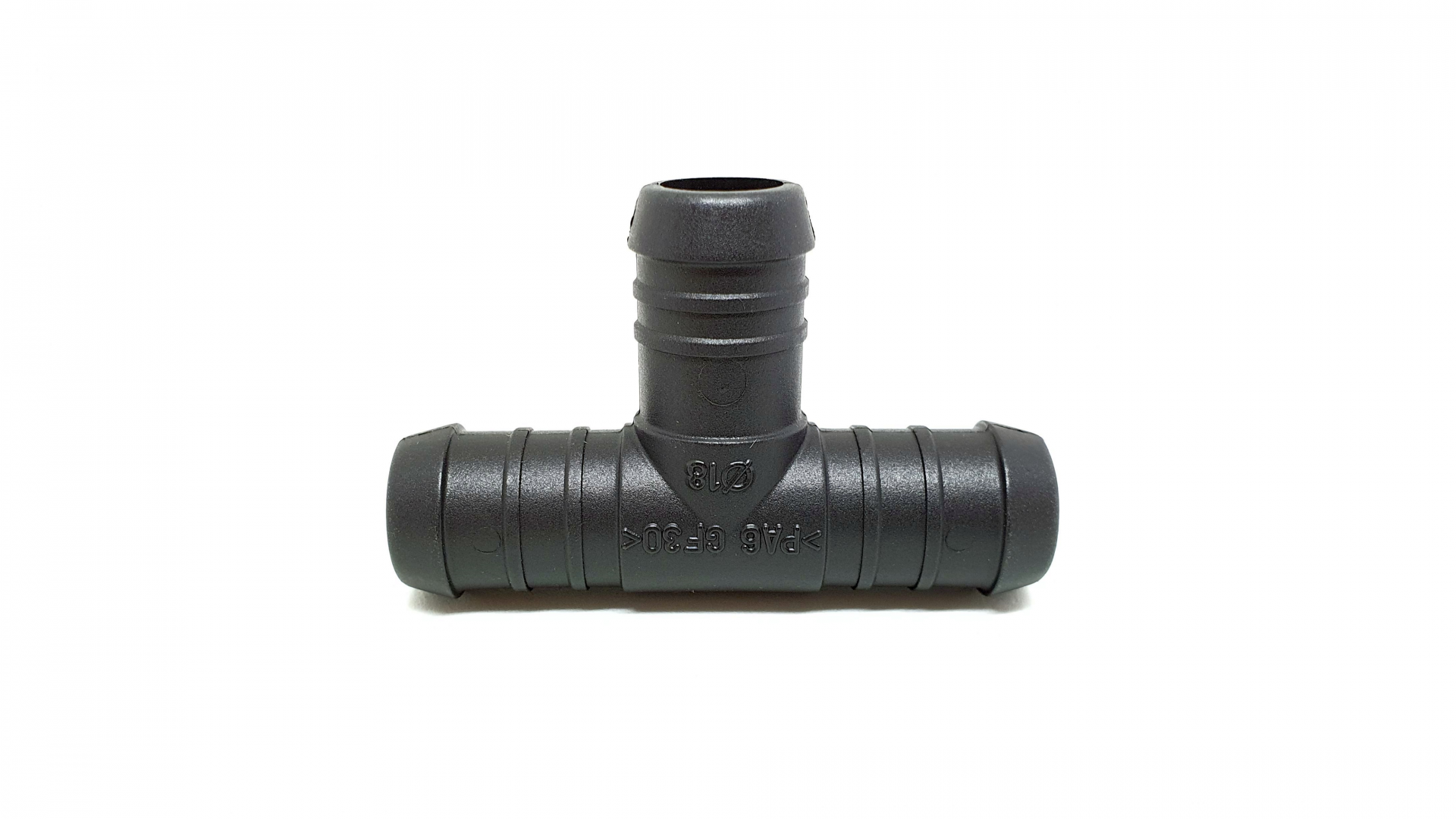 A T-shaped coolant hose connector is suitable for coolant hoses with an inner diameter of 18 mm.